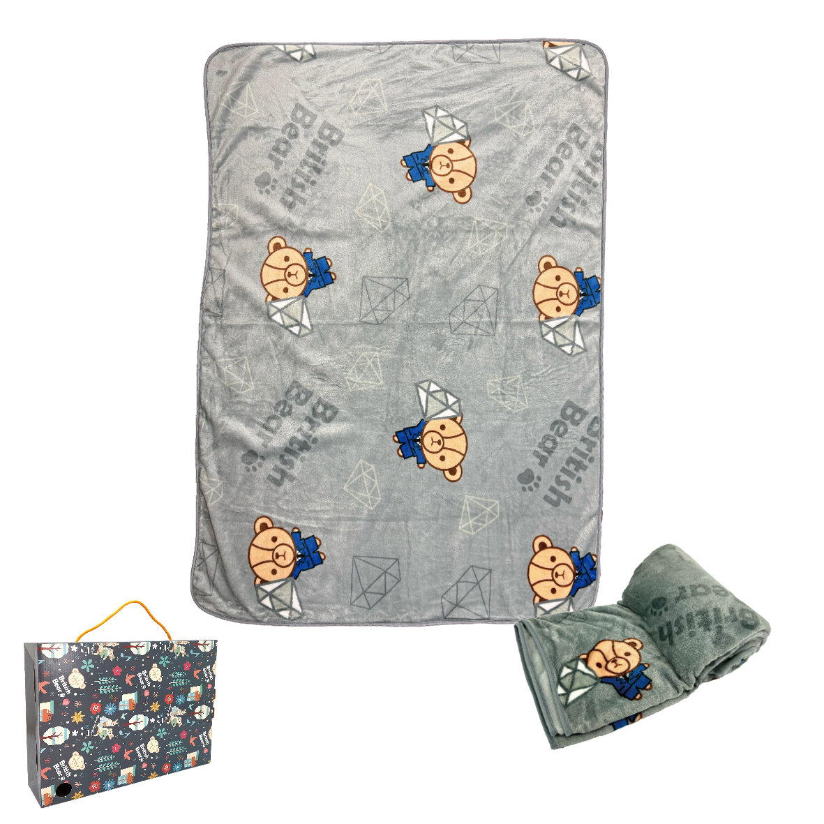 英國熊法藍絨毯120*150-熊鑽(盒裝)