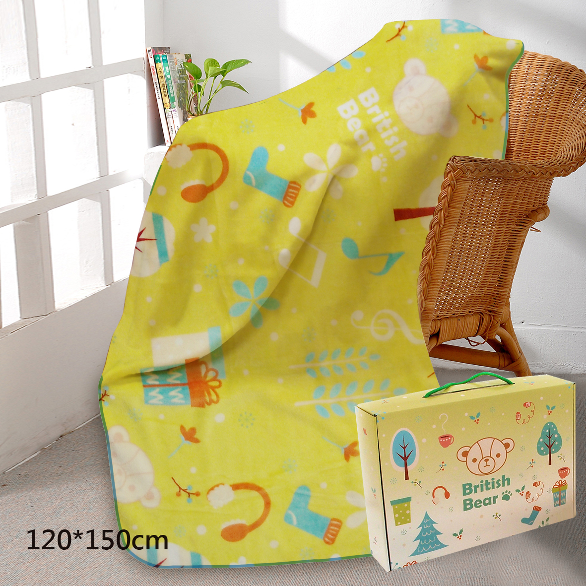 英國熊法藍絨毯120*150-歡樂(盒裝)