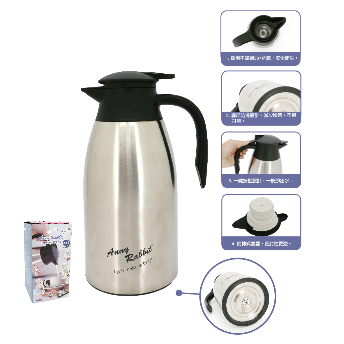 安妮兔不鏽鋼真空保溫壺-2L
