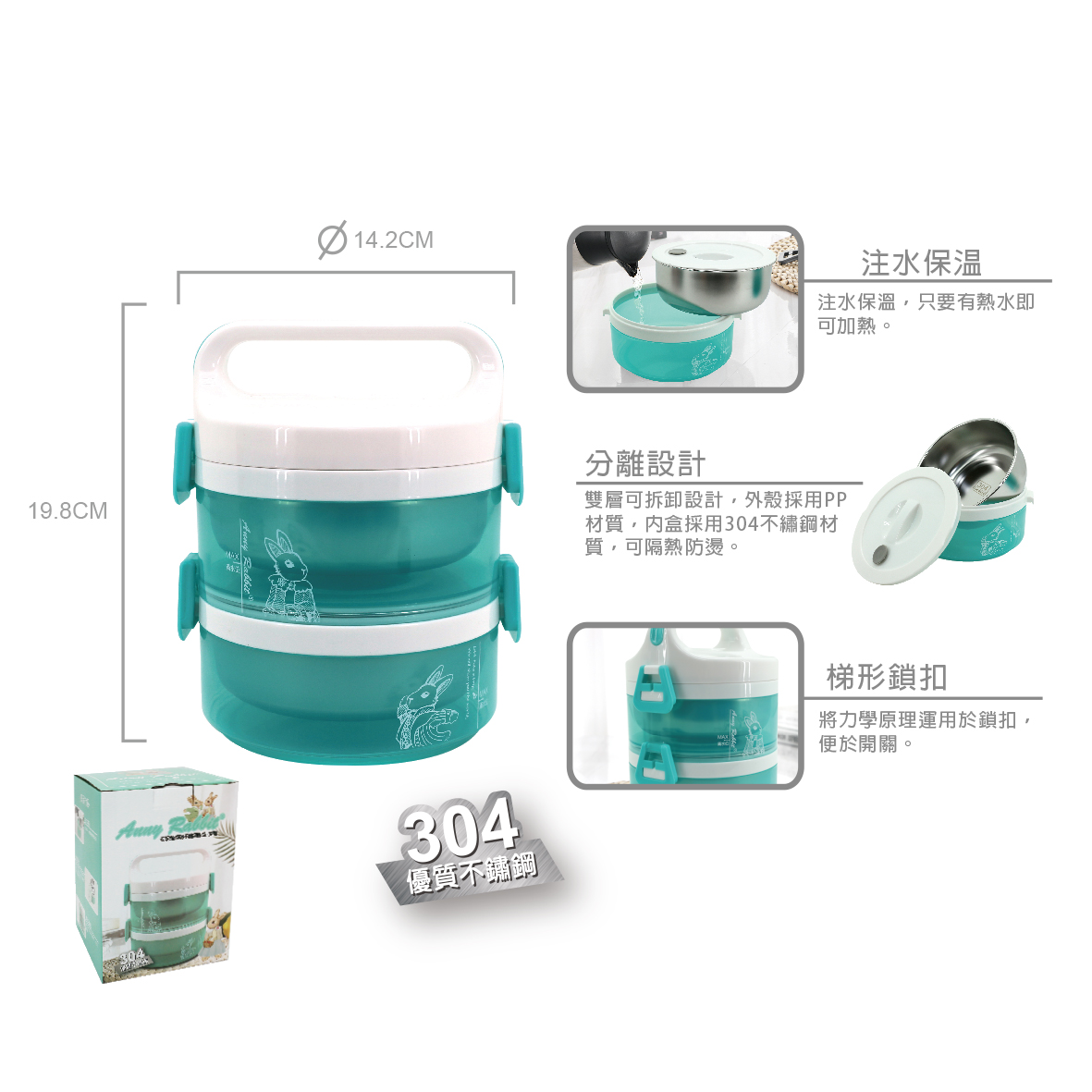 安妮兔透明不鏽鋼飯盒-雙層