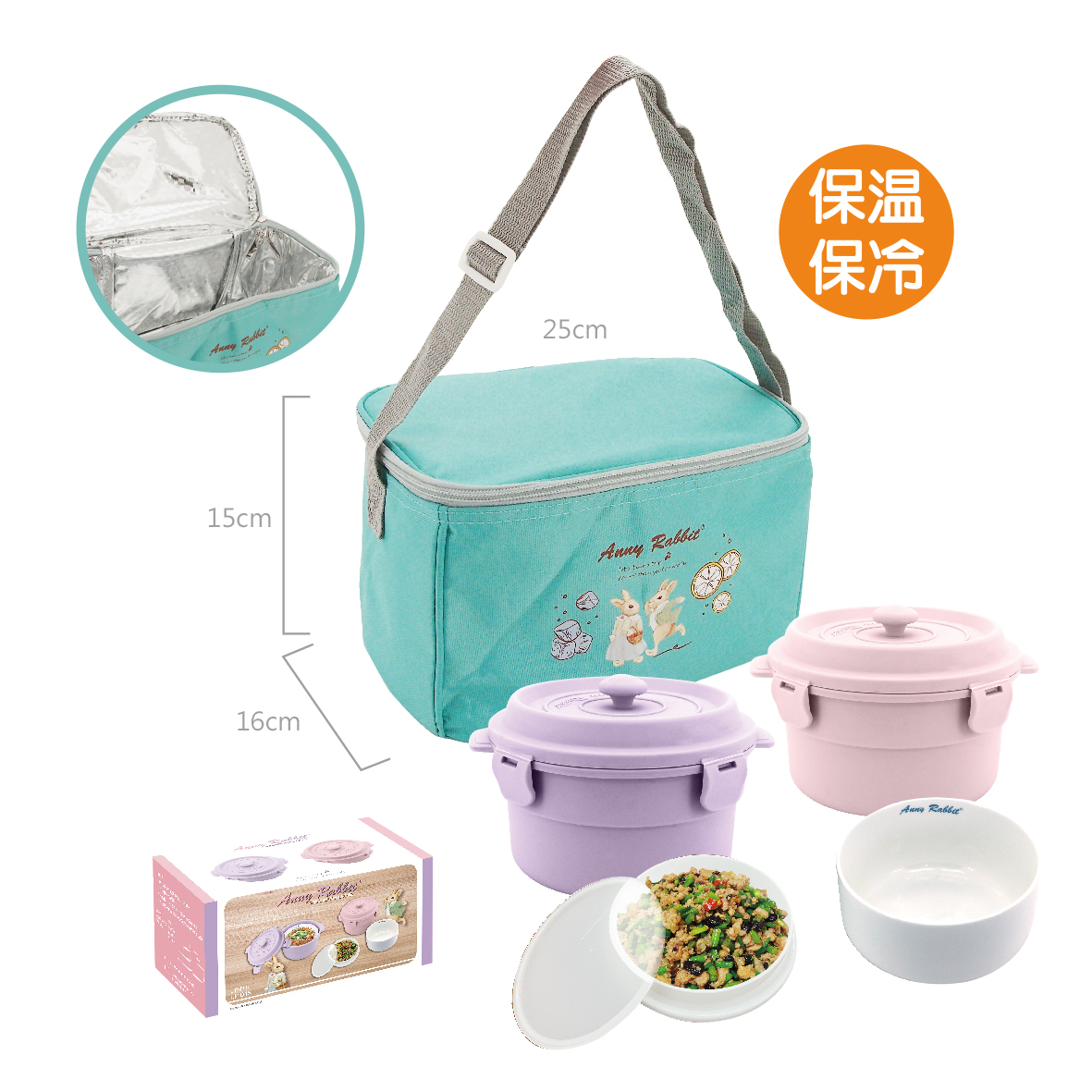 安妮兔鑄鐵造型便當二入禮盒B-鑄鐵陶瓷二代*2 +st2010保冰溫袋