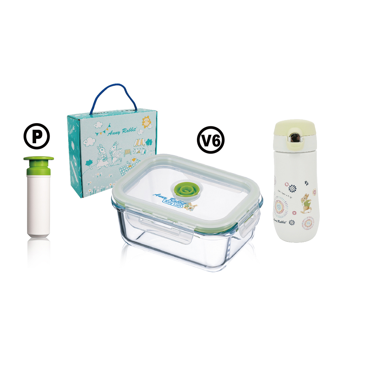 安妮兔真空640ML保鮮組+安妮兔陶瓷彈蓋水瓶-450ml