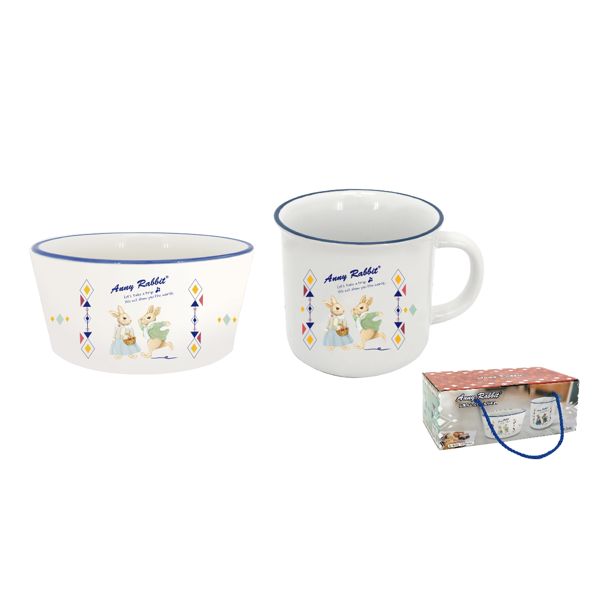 安妮兔仿琺瑯陶瓷杯碗組