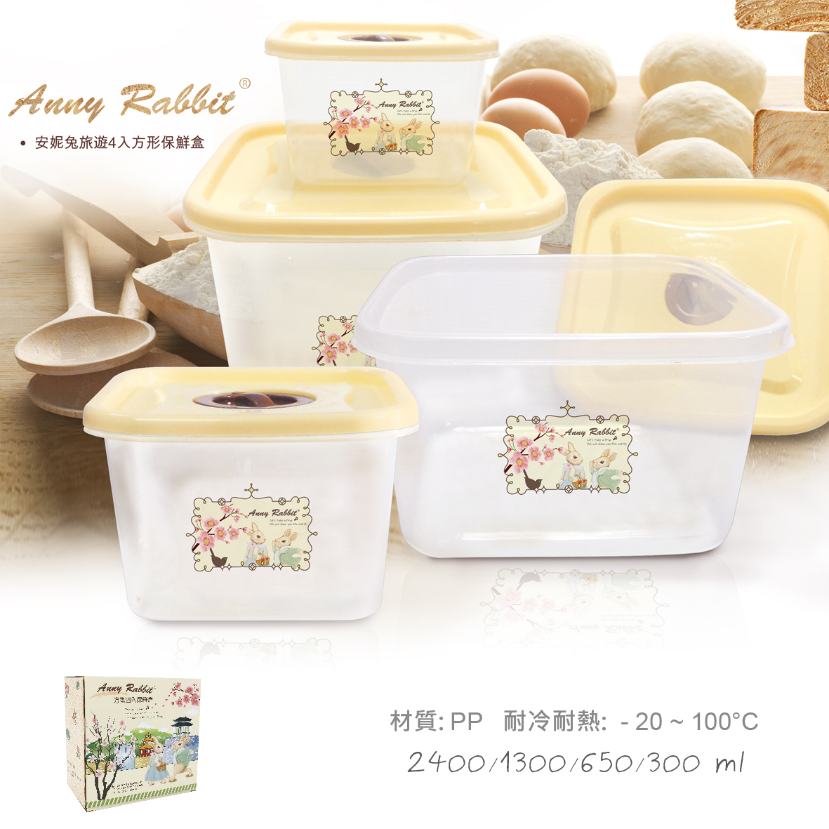 安妮兔方形4入保鮮#2302-櫻花
