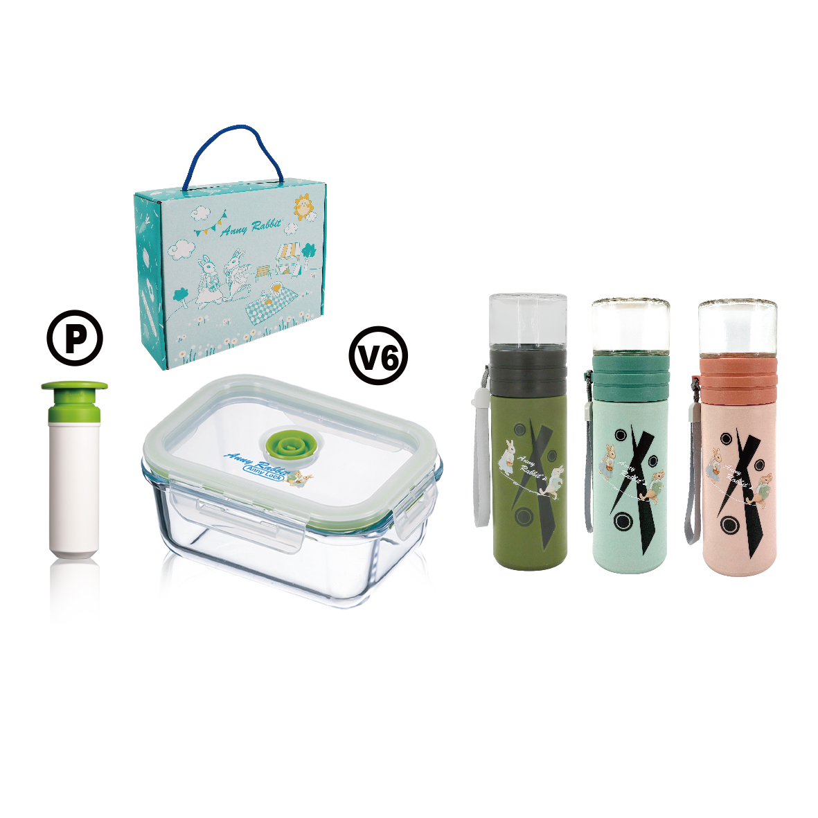 安妮兔真空640ML保鮮組+安妮兔雙層彈蓋濾網玻璃瓶330ml