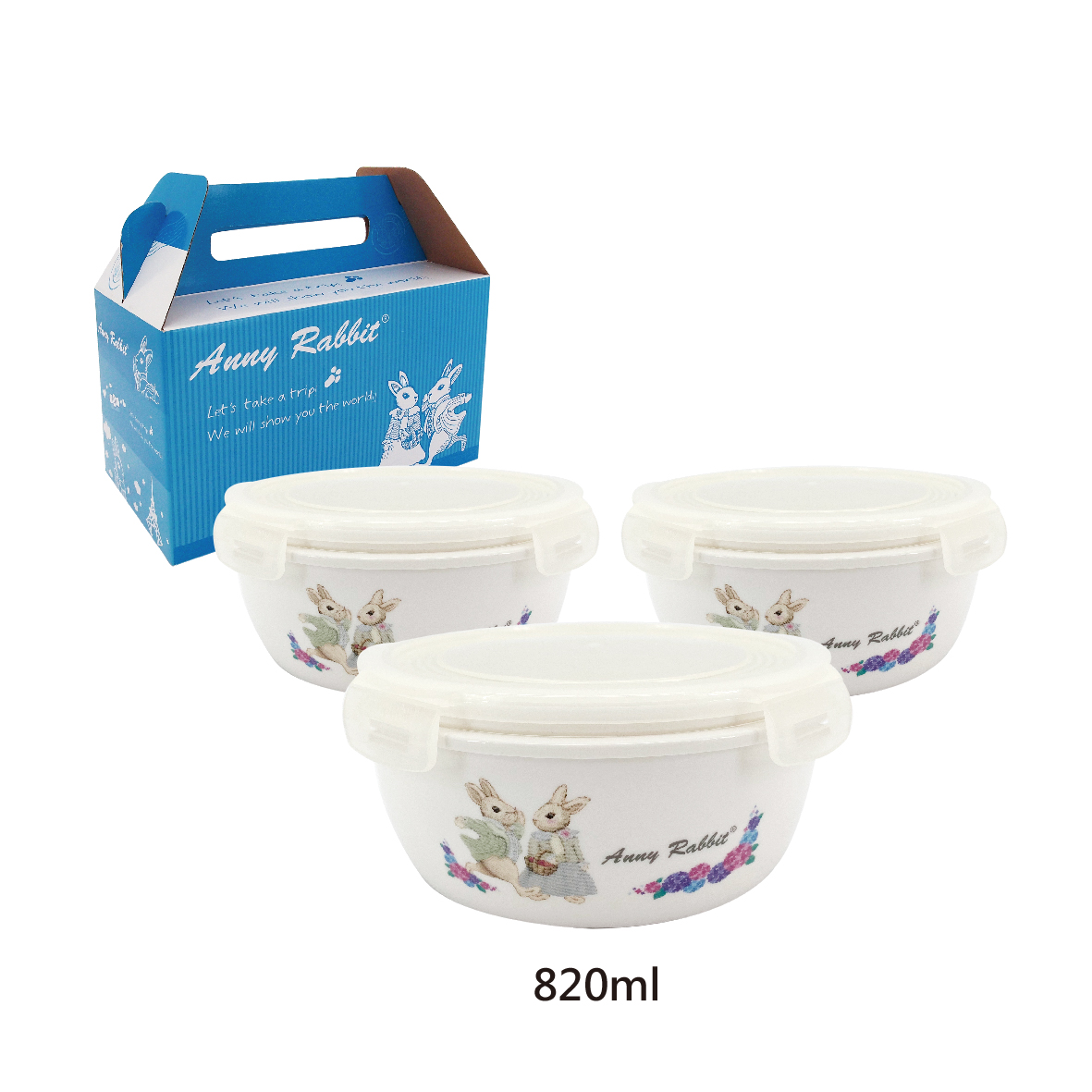 安妮兔陶瓷密扣蓋碗820ml繡球花三入禮盒