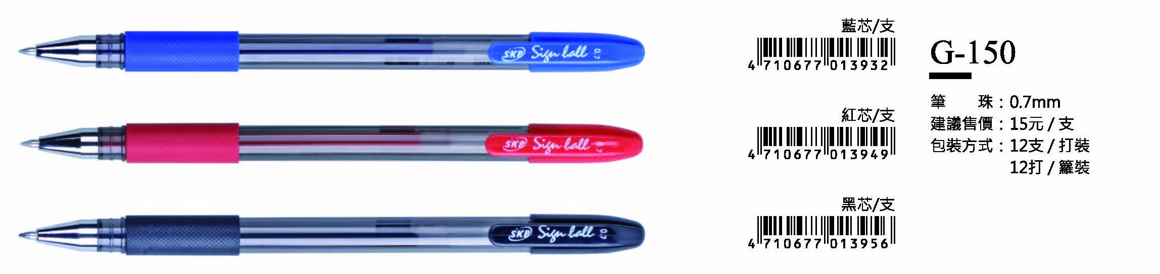 SKB鋼珠筆-0.7mm-最低訂購量28打