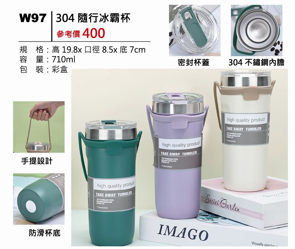 1.規格:高19.8*口徑8 .5*底7cm. 2.容量:710cc. 3.包裝:彩盒. 4.經SGS材質認證. 5.密封杯蓋.304不鏽鋼內膽.手提設計.防滑杯底.